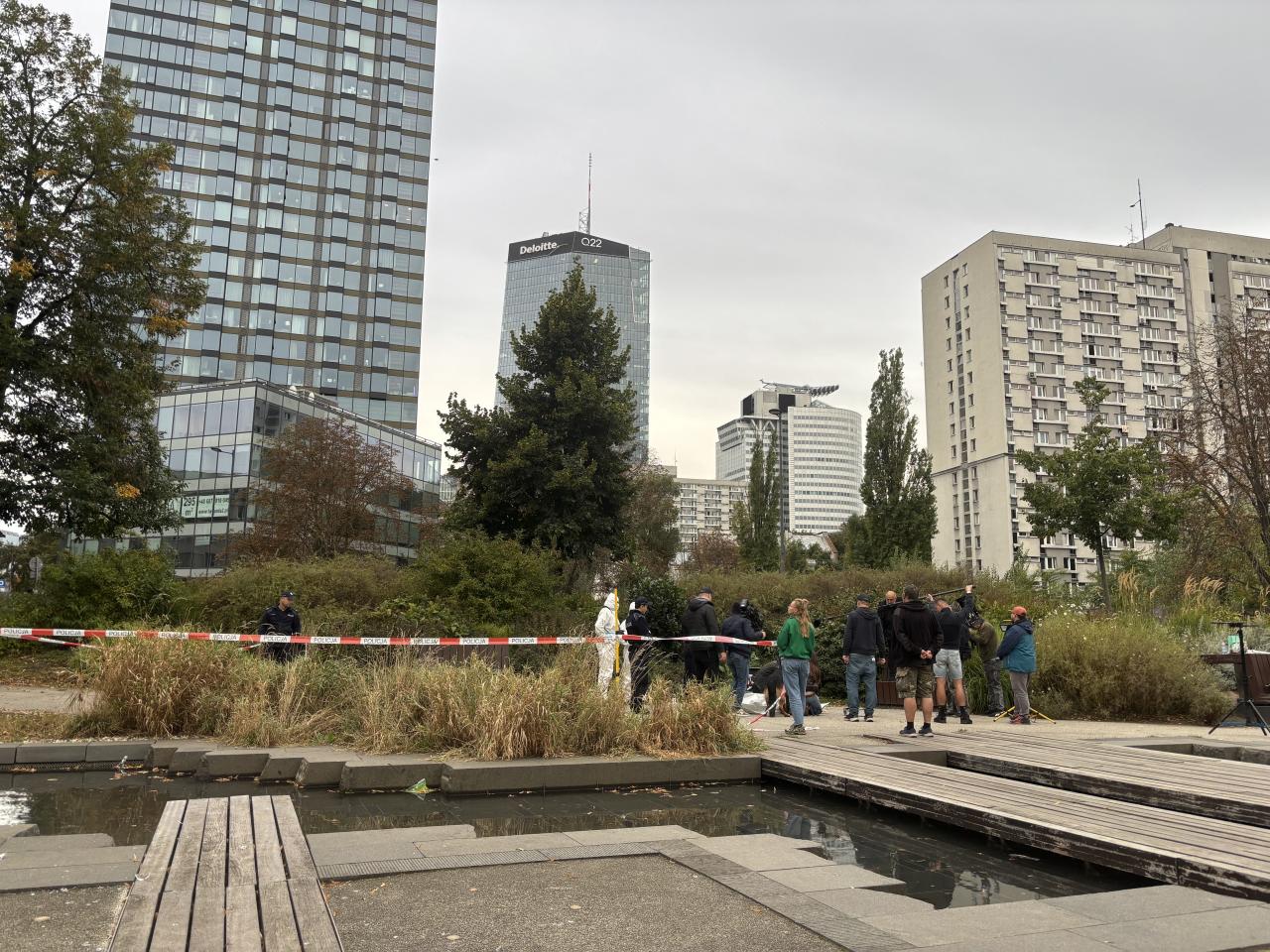 Niedawno na Placu Grzybowskim w Warszawie odbywały się zdjęcia do jednego z przyszłych odcinków serialu kryminalnego TVP "Komisarz Alex", co nasza redakcja widziała z bliska. Wszystko na miejscu wyglądało bardzo realistycznie. Tego dnia powstawała m.in. scena, w której do punktu otoczonego taśmą policyjną, nad czarnym workiem ze zwłokami, zebrali się policjanci grani przez Marcina Rogacewicza i Olgę Bołądź oraz tytułowy pies tropiący czy technicy. A że ekipa filmowa nie liczyła wtedy dużo osób, przechodząca obok staruszka nie zauważyła kamer i z przejęciem próbowała się dowiedzieć, co się stało.