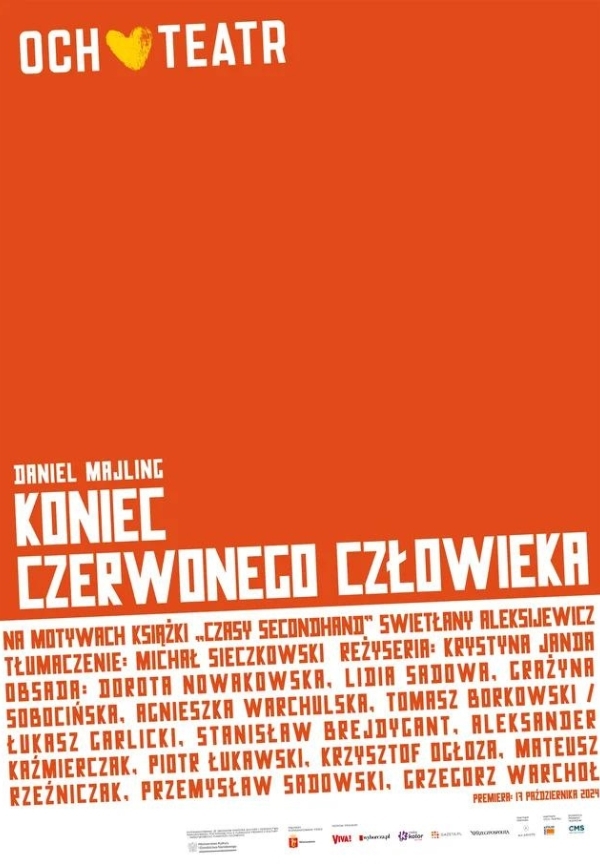 Wspaniała adaptacja teatralna oparta na znanej książce CZASY SECONDHAND Swietłany Aleksijewicz, noblistki, wybitnej pisarki białoruskiej, krytycznej w stosunku do rządów Łukaszenki.