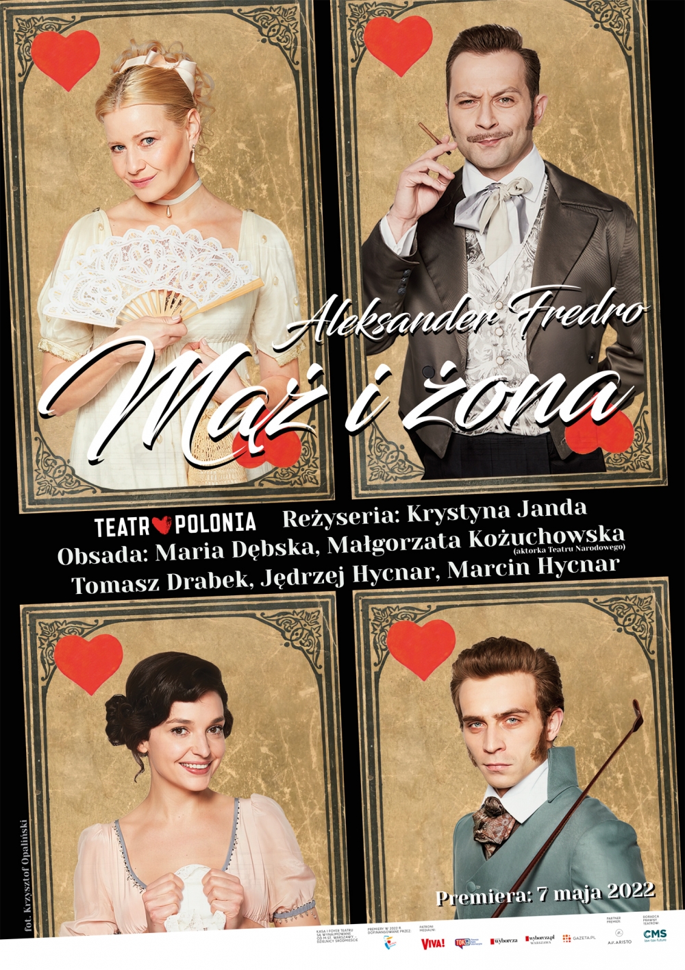 MĄŻ I ŻONA – najcudowniejsza z komedii Aleksandra Fredry. Tym razem w wiele obiecującej, wręcz wymarzonej, obsadzie. Zabawa, intryga, przyjemność i nieśmiertelny hrabia Fredro z jego kpiną, urodą ciętego języka i pięknem wiersza. Mamy nadzieję na szampańskie wieczory.