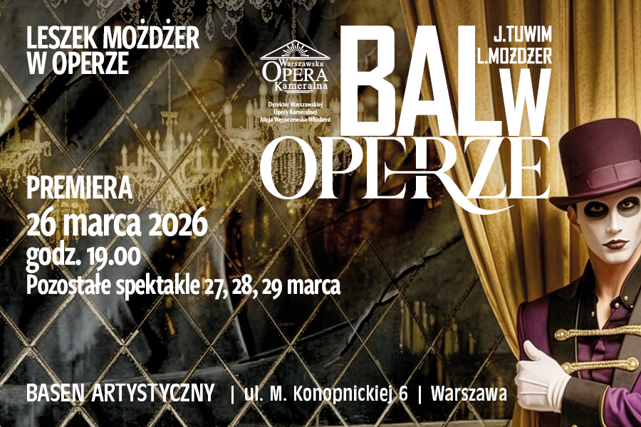 „Bal w operze” według poematu Juliana Tuwima powraca w nowej, bezkompromisowej odsłonie – jako widowisko muzyczno-teatralne na styku opery, performansu i współczesnego teatru. Groteska, która śmieszy do momentu, w którym przestaje być zabawna. Apokaliptyczna wizja świata pod maską przepychu. Bal, który trwa, choć wszystko drży.