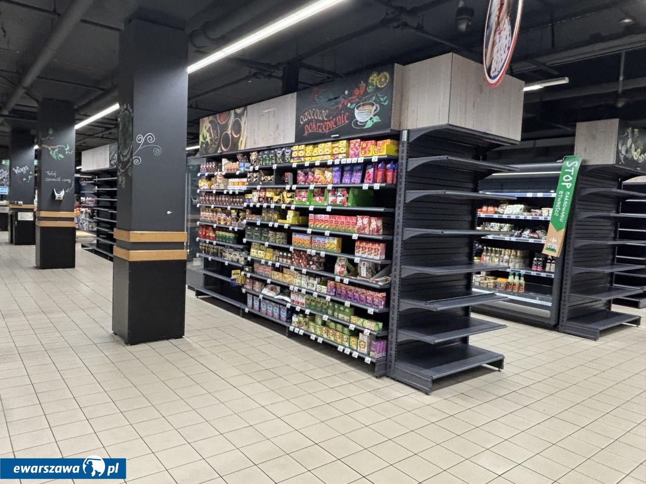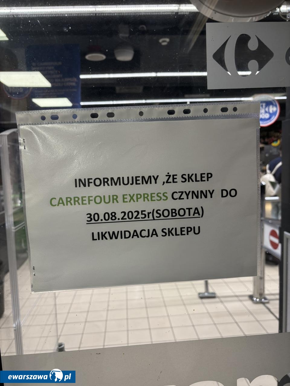 Carrefour Express na kondygnacji -1 Domów Centrum przy ul. Marszałkowskiej 104/122 w Warszawie niegdyś tętnił życiem. Jednak od jakiegoś czasu towar nie jest uzupełniany w efekcie czego regały świecą dramatycznie pustkami. Kartka na drzwiach nie pozostawia złudzeń co do przyszłości sklepu. "Informujemy, że sklep Carrefour Express czynny do 30.08.2025 (sobota). Likwidacja sklepu" - czytamy.