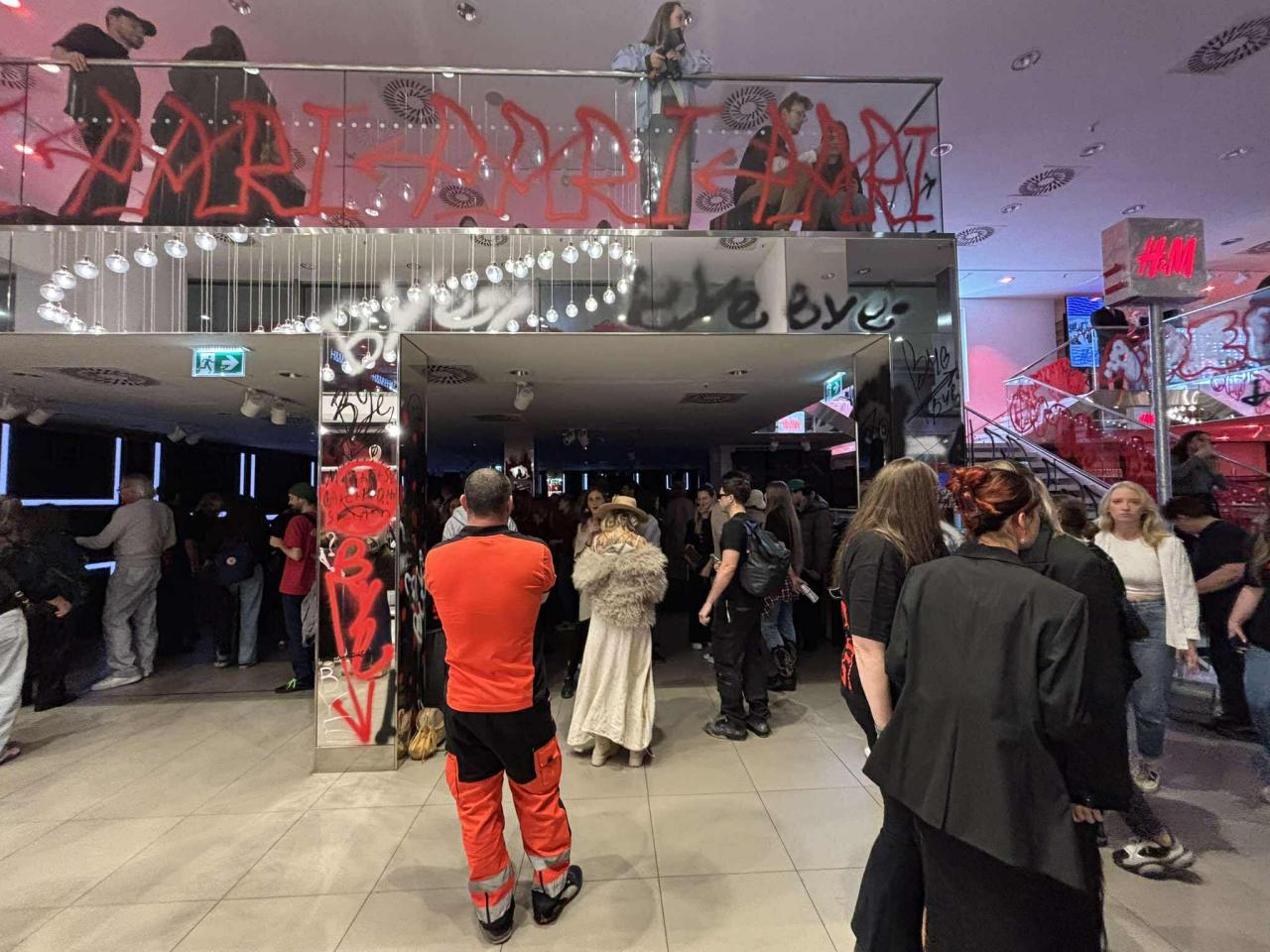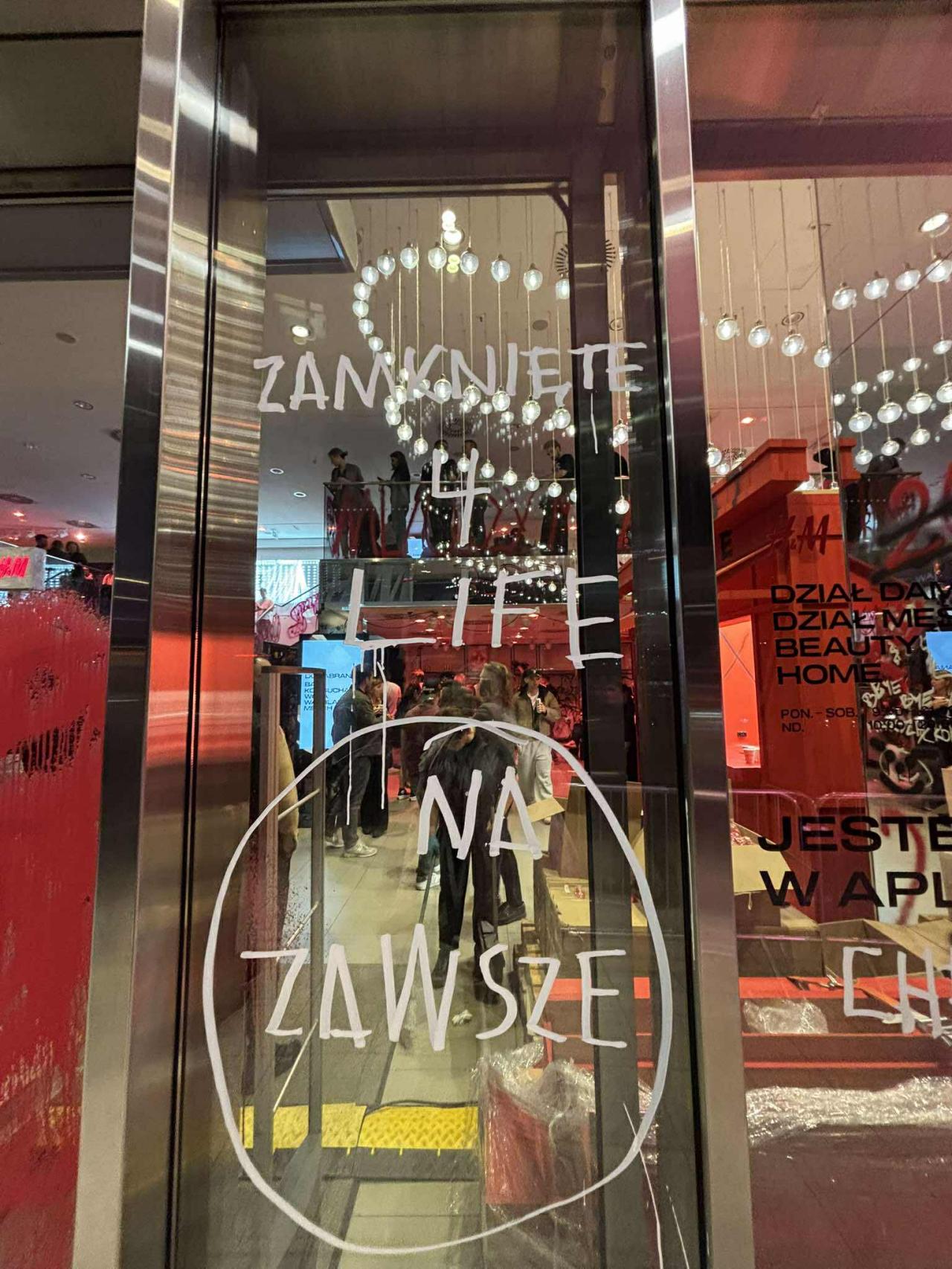 Tłumy na pożegnalnej imprezie flagowego H&M przy Marszałkowskiej. Wymalowali sprayem szyby, wynieśli ciuchy i zrobili dancefloor