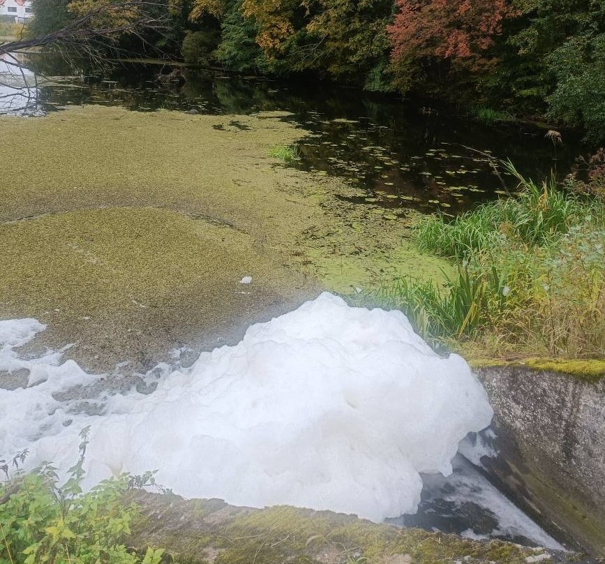 W sobotę jeden ze spacerowiczów zauważył niepokojącą pianę w wodzie na terenie Rezerwatu. Poinformował o tym mieszkańców Wilanowa i zapytał, co może oznaczać taka piana.