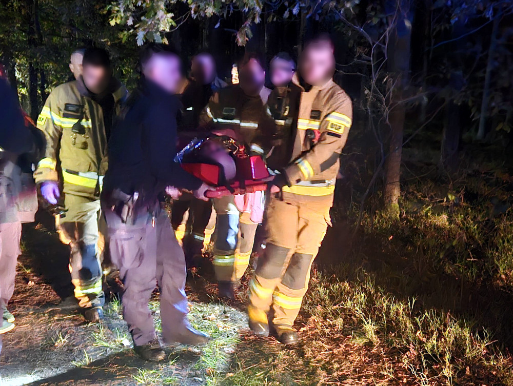 Ostatecznie mężczyzna opuścił las na noszach i trafił do szpitala.
