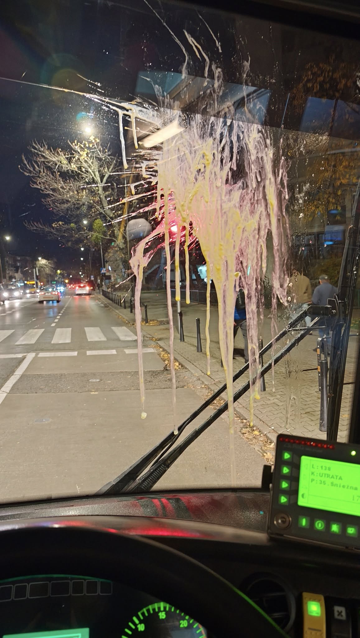 - Zaje*isty Halloween. Jadąc przy prędkości 50 km/h nagle coś uderzyło w moją przednią szybę. Gratuluję idiocie, który to zrobił - napisał kierowca na grupie "ZTM Warszawa".