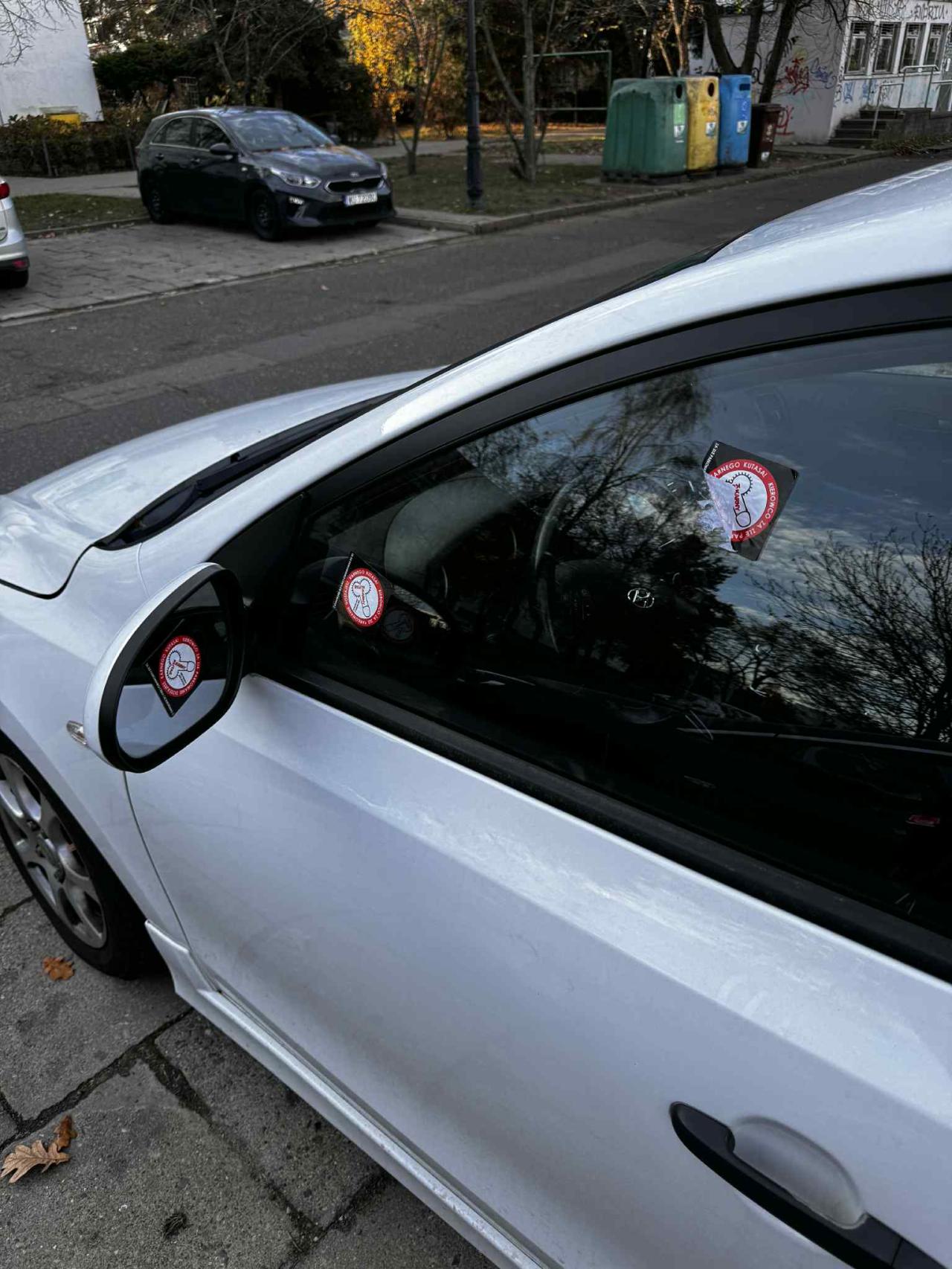Ktoś obkleił mu samochód naklejkami "Karny ku*as za złe parkowanie". Szuka właściciela naklejek. "Będziesz to skrobał cymbale"