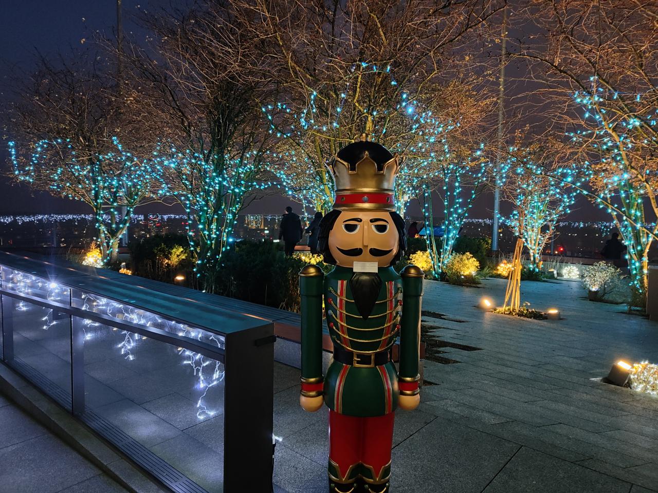Zauważyliśmy też, że na tarasie znajdującym się na najwyższej kondygnacji zarządcy szykują atrakcję w postaci kolejnych ozdob bożonarodzeniowych. Pracownicy składali elementy mini baru, przy którym być może zwiedzający będą mogli zatrzymać się aby coś zjeść lub wypić.
