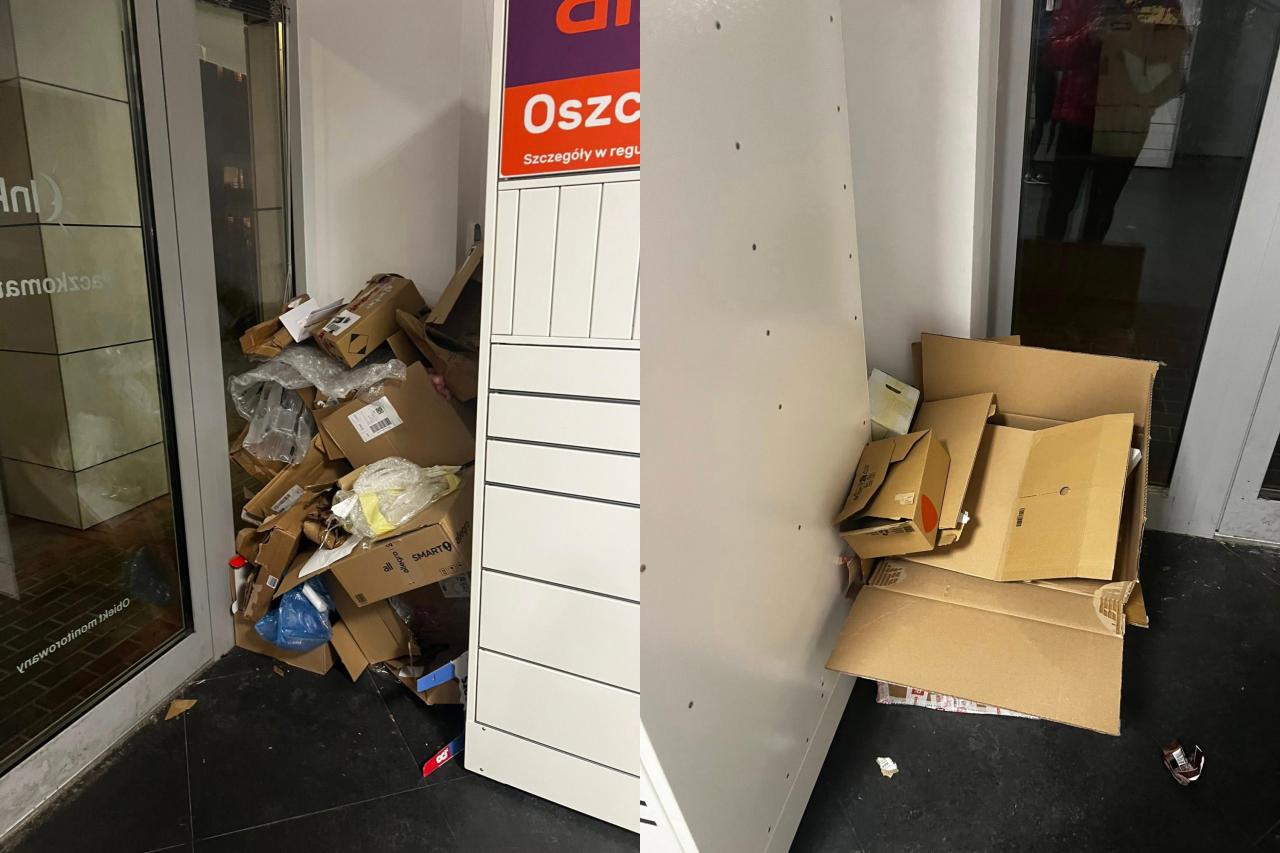 Problem śmieci obok paczkomatów rośnie. Coraz więcej użytkowników otwiera swoje przesyłki na miejscu i nie potrafi donieść kartonu do najbliższego śmietnika.
