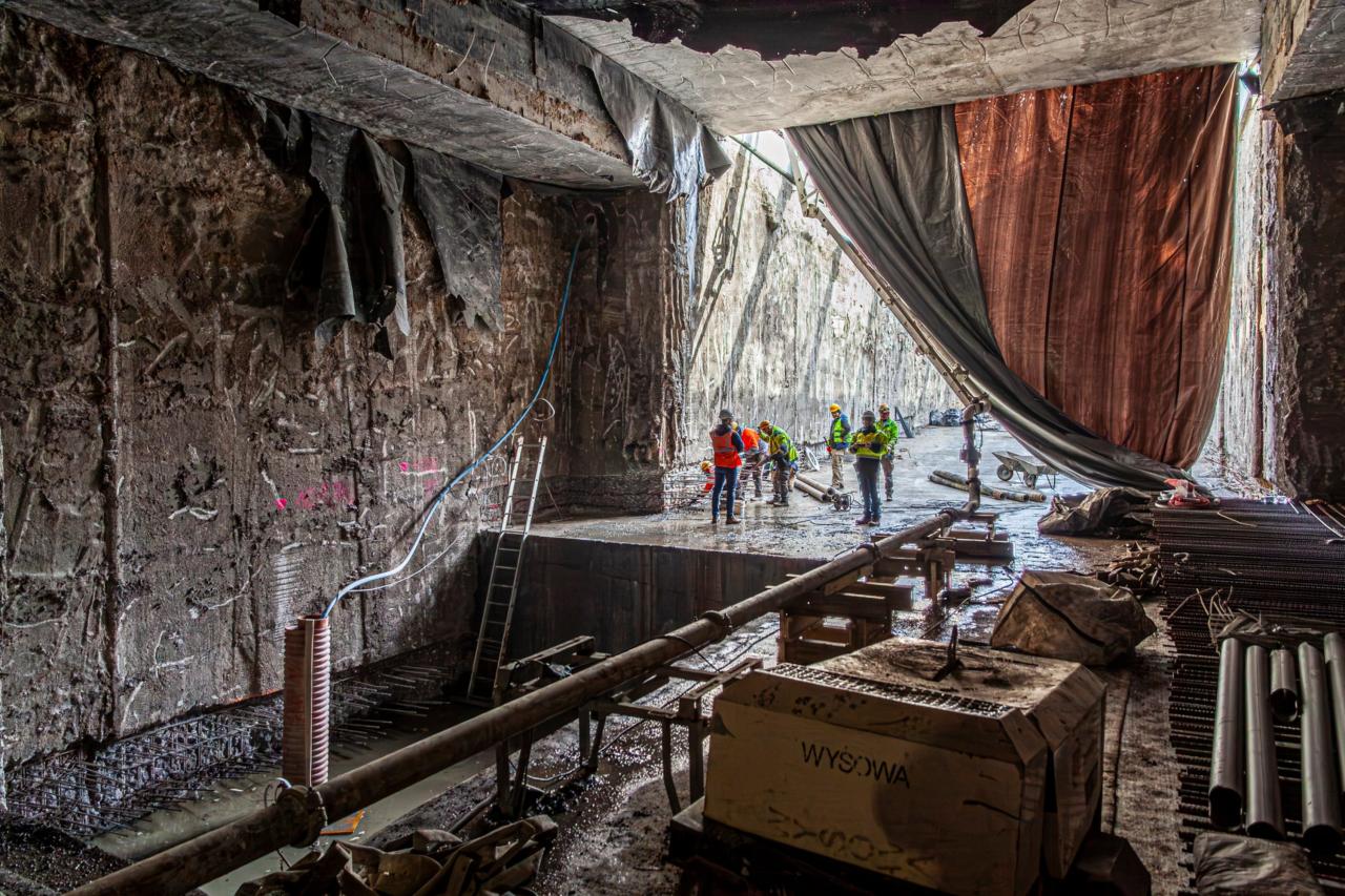 "Płyta denna ("podłoga") już niemal na całej długości wykonana. Trwa budowa i pogłębianie wykopu w miejscu rampy wyjazdowej od strony ul. Bitwy Warszawskiej 1920 r. Prace koncentrują się także w miejscu przyszłego połączenia tunelu z wykonaną już konstrukcją przystanku przy Dw. Zachodnim - trwa głębienie wykopu i wykonywanie stropu górnego tunelu" - dodano w komunikacie.