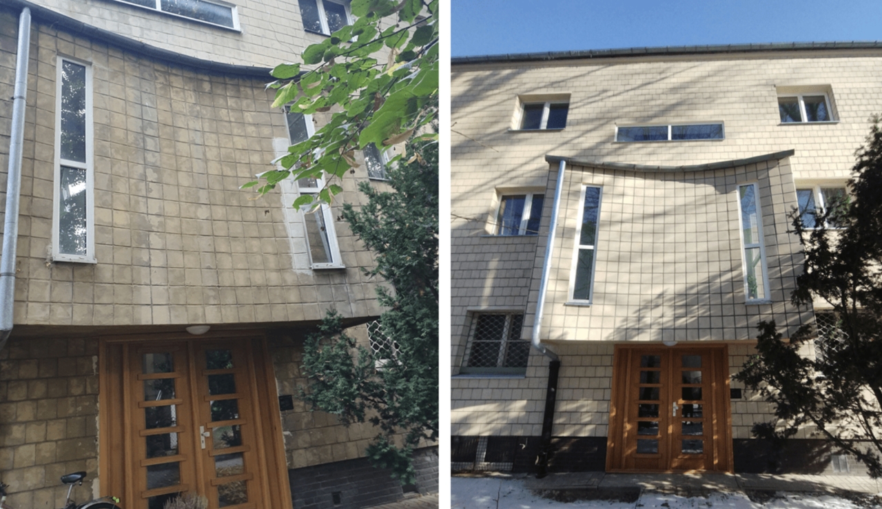 Podczas remontu najtrudniejsze było przywrócenie oryginalnej tekstury ścian, które wcześniej niefortunnie otynkowano. Brakujące płytki trzeba było zrobić ręcznie. Naprawiono również uszkodzone balkony, metalowe barierki oraz cokół z brązowego klinkieru. Co ciekawe, na elewacji od strony ul. Bajońskiej zdecydowano się zachować autentyczne postrzeliny z czasów II wojny światowej jako świadectwo historii.