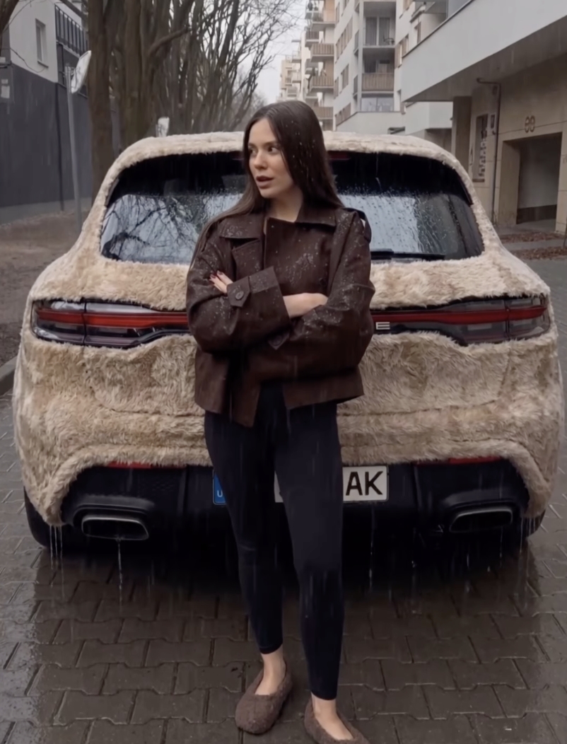 Internet obiegają zdjęcia mieszkającej w Warszawie Ukrainki, która okleiła swoje Porsche pluszowym materiałem. Rzekomą relację z tego wrzuciła na Instagram. Temat podchwyciły nawet zagraniczne media, podając, że oklejenie auta pluszem miało kosztować 20 tysięcy dolarów. Sama zainteresowana zachwyca się na swoim profilu zasięgiem 4 milionów odsłon, choć tego samochodu nikt na ulicach Warszawy nie widział.