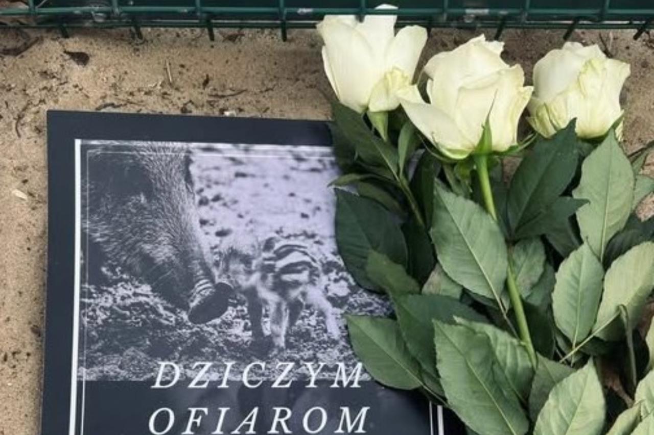 Bemowo. Zostawiają róże w miejscu, w którym odstrzelono dziki. Jest też wymowna tabliczka
