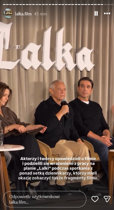- Cały czas się śmiałam. To był wielki zaszczyt znowu spotkać się z Markiem [Kondratem] i z Marcinem [Dorocińskim]. Uważam, że my jesteśmy właściwie w jakiejś takiej przyjaźni aktorskiej, że my umiemy ze sobą grać. Sporo graliśmy, więc się wyczuwamy. Jestem podekscytowana; to jest wspaniały film. Właściwie mogłabym o tym mówić tak, że nikogo już nie dopuszczę do głosu. Trzymajcie kciuki za ten film i zapraszam was do kina. To film, który zasługuje na wielki ekran - wyznała podczas konferencji Agata Kulesza. Premiera filmu zaplanowana jest na 30 września. Podczas konferencji padło również pytanie do Kamili Urzędowskiej, dlaczego przyjęła rolę Izabeli Łęckiej. - Dla sławy i pieniędzy - zażartowała aktorka.
