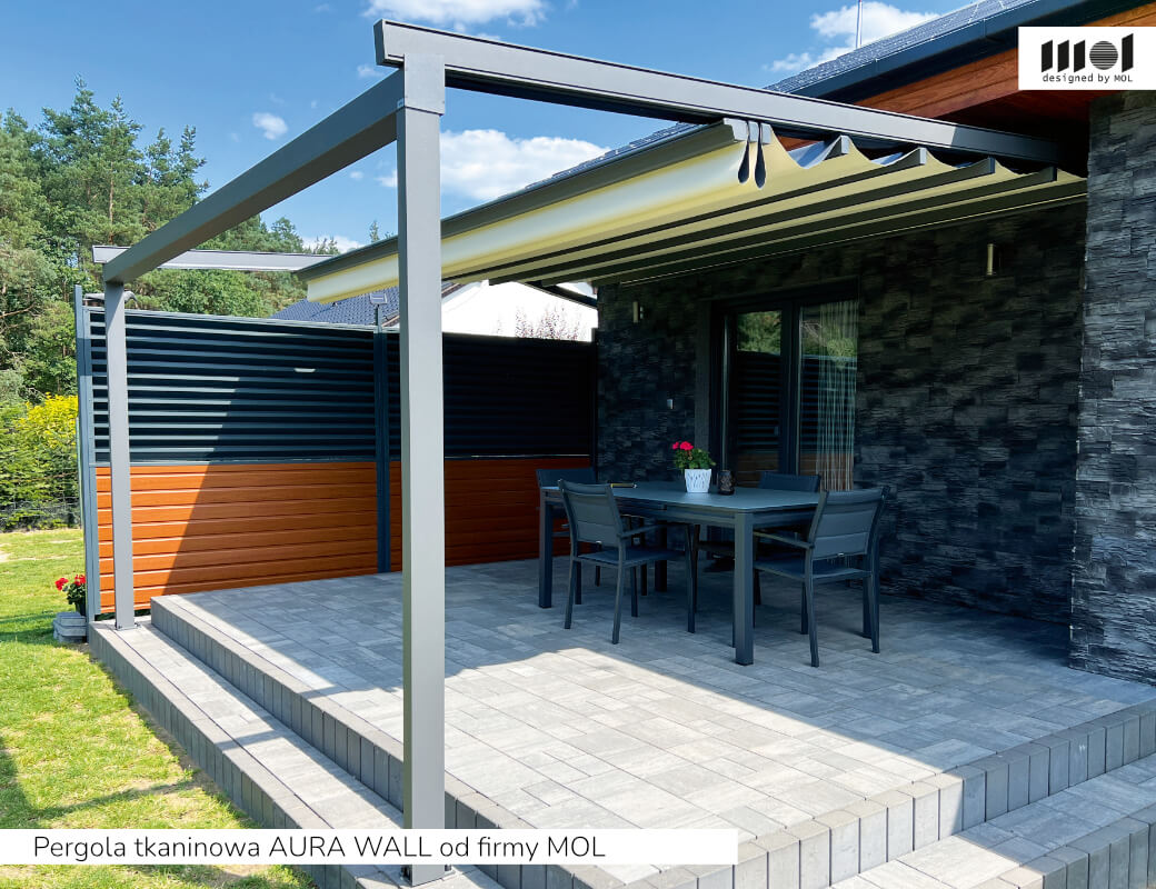kolekcja AURA firmy MOL - bardziej ekonomiczna wersja pergoli (bez silnika w standardzie), która zachowuje wysoką estetykę i funkcjonalność, stanowiąc świetną alternatywę dla osób szukających solidnego rozwiązania w niższym budżecie