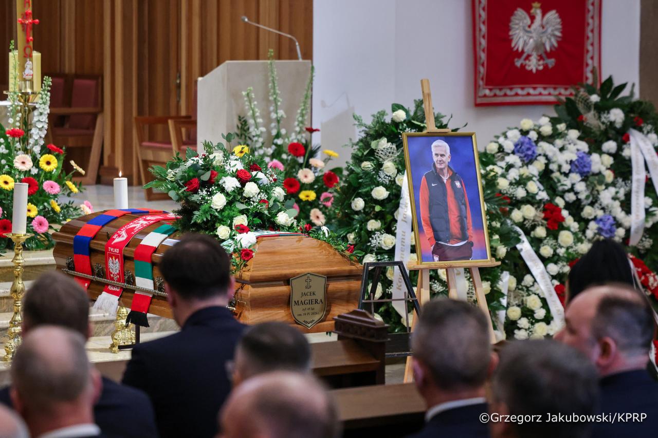Pożegnać byłego trenera Legii Warszawa przyjechali nie tylko kibice, ale również prezydent Karol Nawrocki oraz minister sportu i turystyki Jakub Rutnicki. Prezydent pośmiertnie odznaczył trenera Krzyżem Oficerskim Orderu Odrodzenia Polski za wybitne osiągnięcia w pracy szkoleniowej i trenerskiej oraz dokonania sportowe. Order w kościele odebrała żona, Magdalena Magiera.