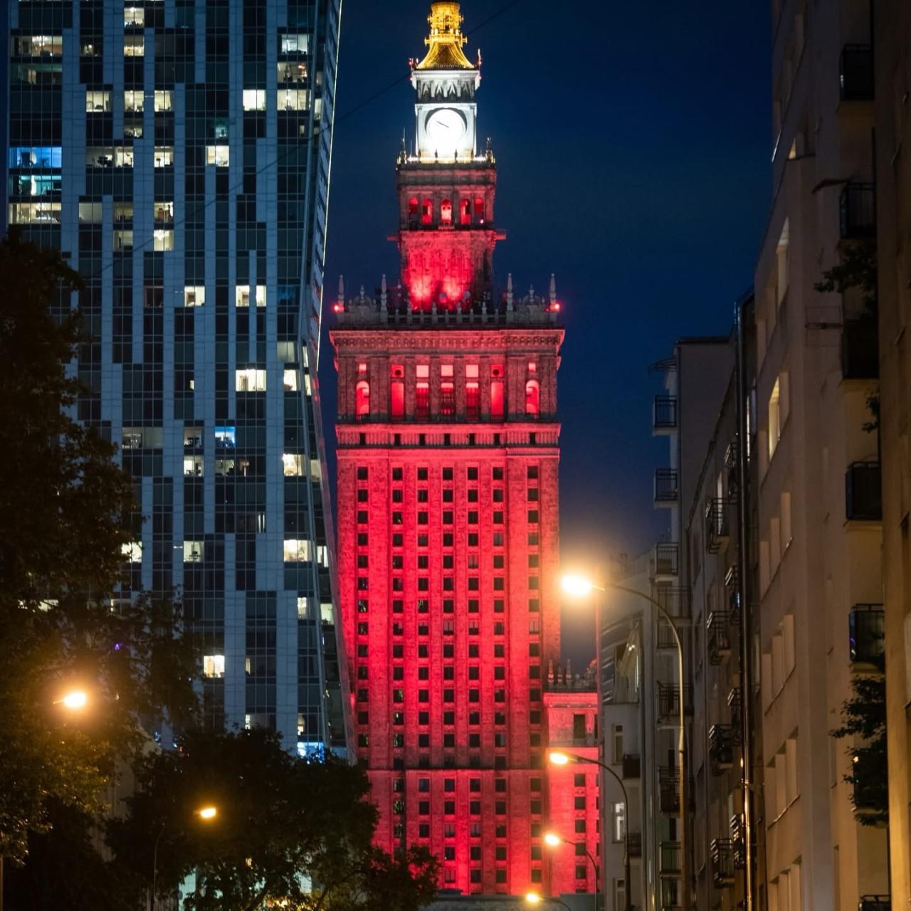Pałac Kultury i Nauki rozświetlony na czerwono. To gest podziwu dla akcji organizowanej przez znanego YouTubera