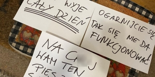 Mają się znęcać nad psem z Saskiej Kępy. Na wycieraczce znaleźli "liściki". "Na c**j" wam ten pies"