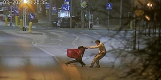 Szarpanina na Starym Mieście. Poszkodowana, wystraszona kobieta schowała się za przystankiem