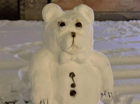 Na Mariensztacie pojawił się piękny miś ze śniegu. "Za zrobienie zdjęcia nie trzeba płacić 50 zł"