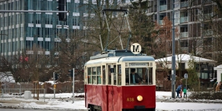 Zabytkowy tramwaj z Poznania na warszawskich torach. W środku czekają świętomarcińskie rogale
