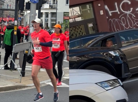 Ogromne korki na Powiślu przez biegaczy. Kierowca nie wytrzymał i zaczął wrzeszczeć na całą ulicę. WIDEO