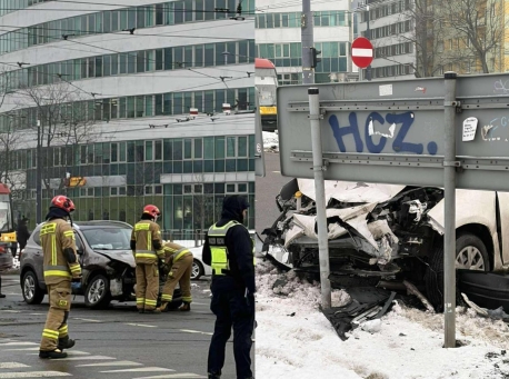 Wypadek na Woli, byliśmy na miejscu. Dwie osoby w szpitalu