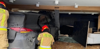 Wola. Auto wjechało po kolizji do lokalu usługowego