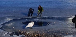 Odłowiona łabędzica trafiła do zoo w Warszawie. Mogła nie przeżyć nocy na stawie w parku