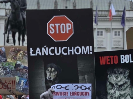 Wielki protest obrońców praw zwierząt dotarł pod Pałac Prezydencki. Poszło o łańcuchy. "Odrzuć weto. Przeproś psa"