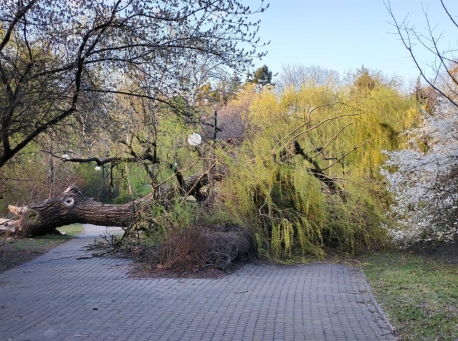 Silny wiatr powalił okazałą wierzbę na Woli. "Była cudna"