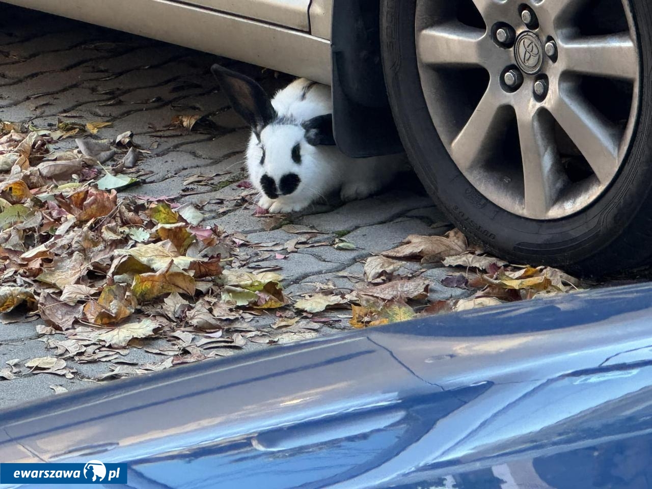 Królik siedział pod samochodem i bał się wyjść. Mieszkanka próbowała go złapać, ale początkowo nie udało jej się to, więc zaapelowała na platformie sąsiedzkiej o pomoc.