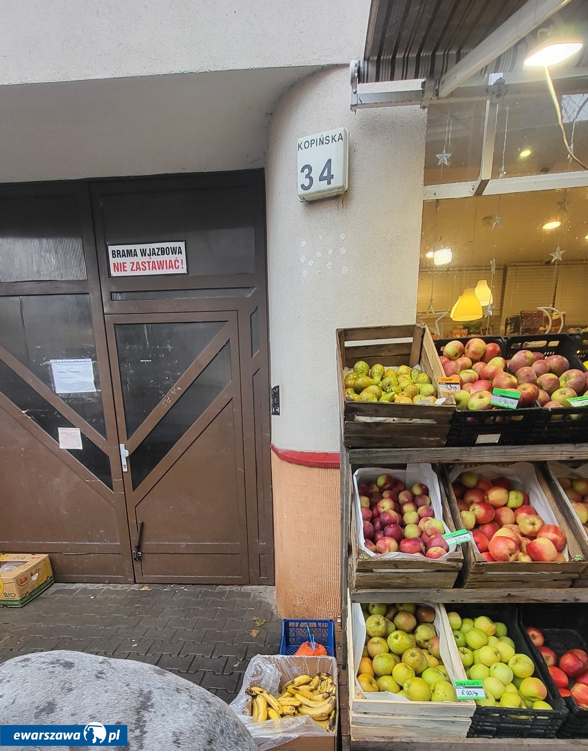 Przechodzień zauważył skrzynkę z bananami i warzywami. Dowiedział się od obsługi sklepu, że wystawione w skrzynkach owoce można sobie wziąć. Postanowił podzielić się informacją z sąsiadami z Ochoty.