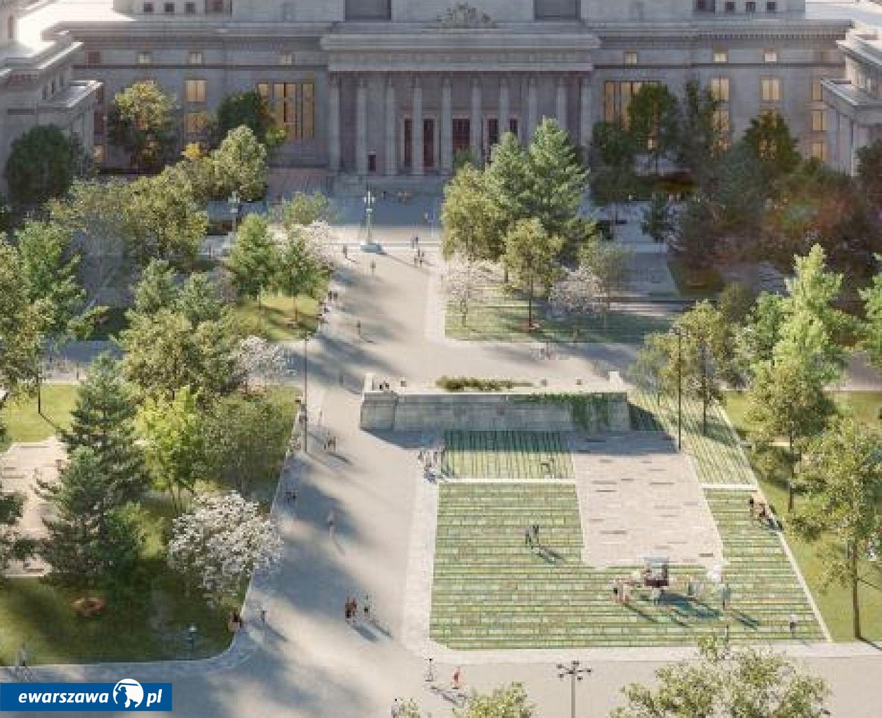 Odbudowa trybuny honorowej z lat 50. przed Pałacem Kultury i Nauki w ramach budowy Placu Centralnego wywołuje kontrowersje.