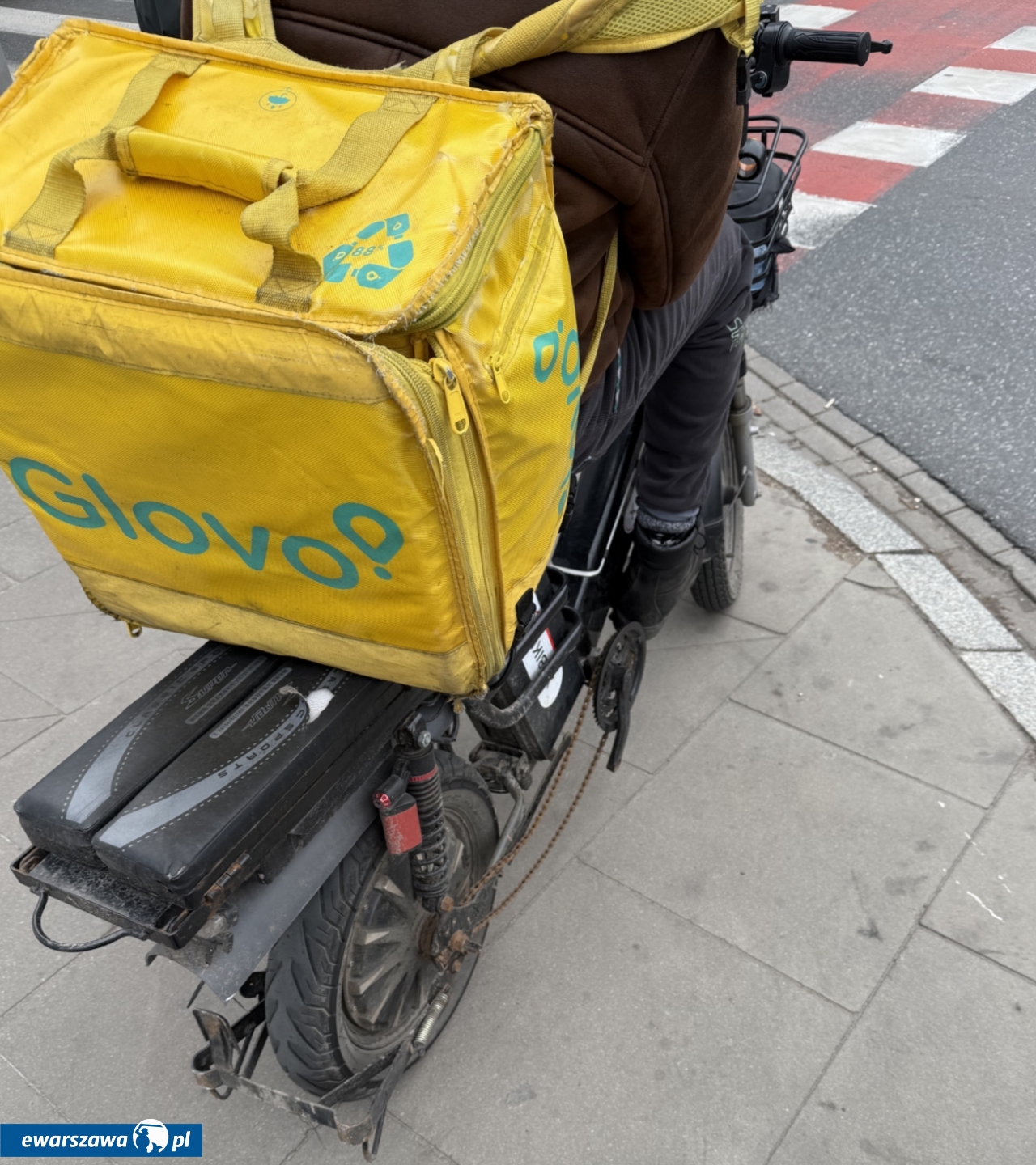 Dostawca jedzenia na rowerze elektrycznym z odkręconymi pedałami. "Już nawet nie udają, że pedałują"