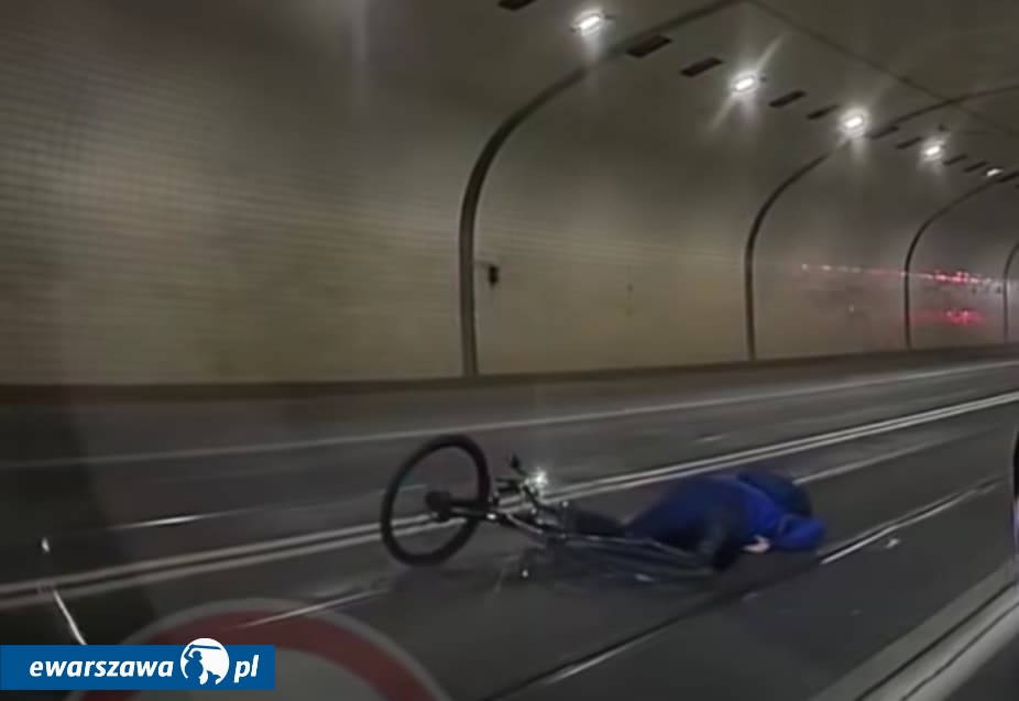 Rowerzysta przewrócił się w tunelu. Miał poobdzieraną twarz, ale odmówił pomocy. Jest nagranie