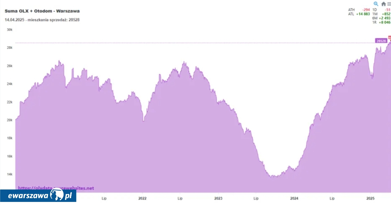 Na koniec pierwszego kwartału 2025 roku na warszawskim rynku nieruchomości dostępnych było prawie 28,8 tys. ogłoszeń dotyczących sprzedaży mieszkań - to najwyższy wynik w historii i o prawie 50% więcej niż rok wcześniej.