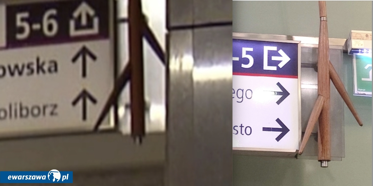 "Nie mogę znaleźć lepszego kadru, ale może tyle wystarczy. Na stacjach metra podwieszone są w niektórych miejscach takie... No właśnie, co? Drewniane, rozwidlone, wygląda trochę jak dziwna miotła, trochę jak stojak na coś." - napisał na wykopie Multipurpose_Labels. Pytanie trafiło do Warszawskiego Metra.