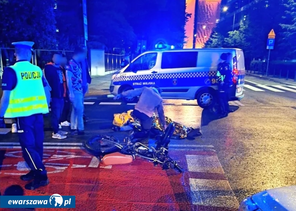 Na Woli doszło do groźnego wypadku na rogu Wroniej i Łuckiej. To właśnie tam obok uszkodzonego roweru z napędem elektrycznym leżał człowiek. Mężczyzna nie stracił przytomności, ale skarżył się, że ma trudności w oddychaniu i ból nogi. - Ze względu na ryzyko urazów wewnętrznych, strażnicy nakazali mu, by nie próbował wstawać, otoczyli go opieką i zadbali o komfort termiczny. Przede wszystkim wezwali pogotowie oraz inny patrol do zabezpieczenia miejsca zdarzenia, by nie doszło do powtórnego potrącenia poszkodowanego oraz policję - informuje Straż Miejska. Okazało się z relacji świadka, że sprawcą kolizji był kierowca samochodu (zajmuje się przewozem osób), który nawet się nie zatrzymał.
