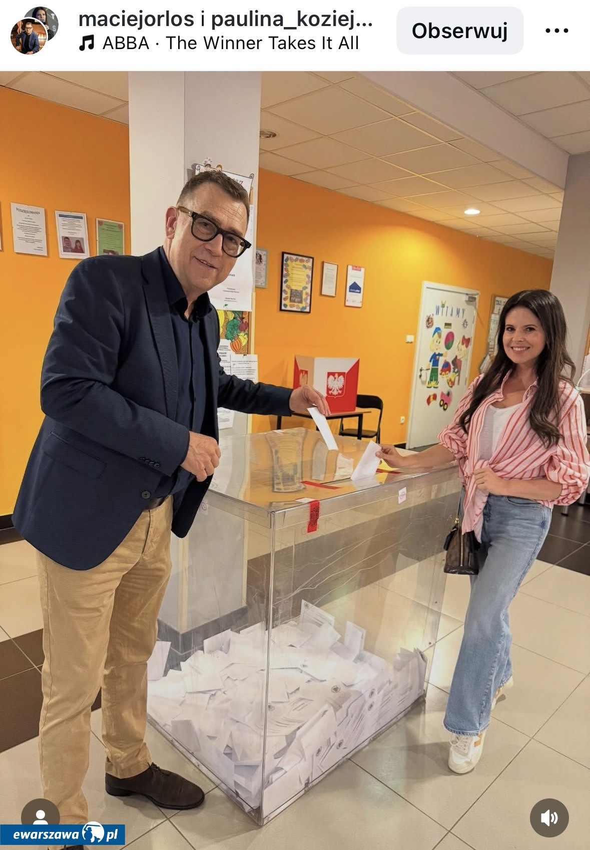 1 czerwca 2025 roku odbywa się druga tura wyborów prezydenckich. Głośno jest o komisji z okręgu 339 na warszawskim Żoliborzu, gdzie członkowie komisji założyli czerwone korale. Więcej przeczytasz o tym TU. Tymczasem gwiazdy od rana chwalą się w mediach społecznościami swoimi zdjęciami z wizyt w lokalach wyborczych. Dużo z nich głosowało w Warszawie. Dzięki temu wiemy, że w wyborach prezydenckich wzięła udział m.in. Małgorzata Rozenek-Majdan, Michał Szpak, Barbara Kurdej-Szatan, Kayah, Kinga Rusin czy Magdalena Cielecka. Julia Wieniawa, która przebywa na wakacjach, swój głos oddała za to na Bali. Prawdziwym hitem jest jednak Michał Żebrowski i jego żona Aleksandra.
