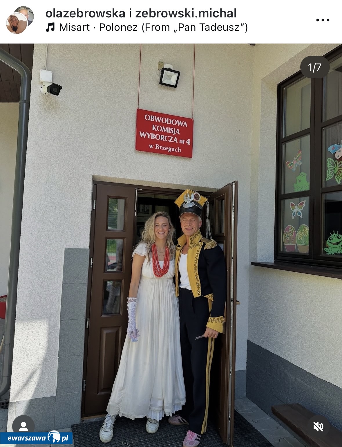 Słynni małżonkowie pamiętając tytułową rolę Michała z "Pana Tadeusza", przebrali się za jego bohaterów. I tak oto Żebrowski znowu założył charakterystyczny kostium z jednej z końcowych scen z ekranizacji Andrzeja Wajdy, a Aleksandra wystylizowała się na Zosię. Co więcej, po wyjściu z komisji wyborczej, również zatańczyli razem Poloneza. "Brawo za ułańską fantazję" - skomentowała Anna Samusionek. To jak wyglądali zobaczycie w naszej galerii.