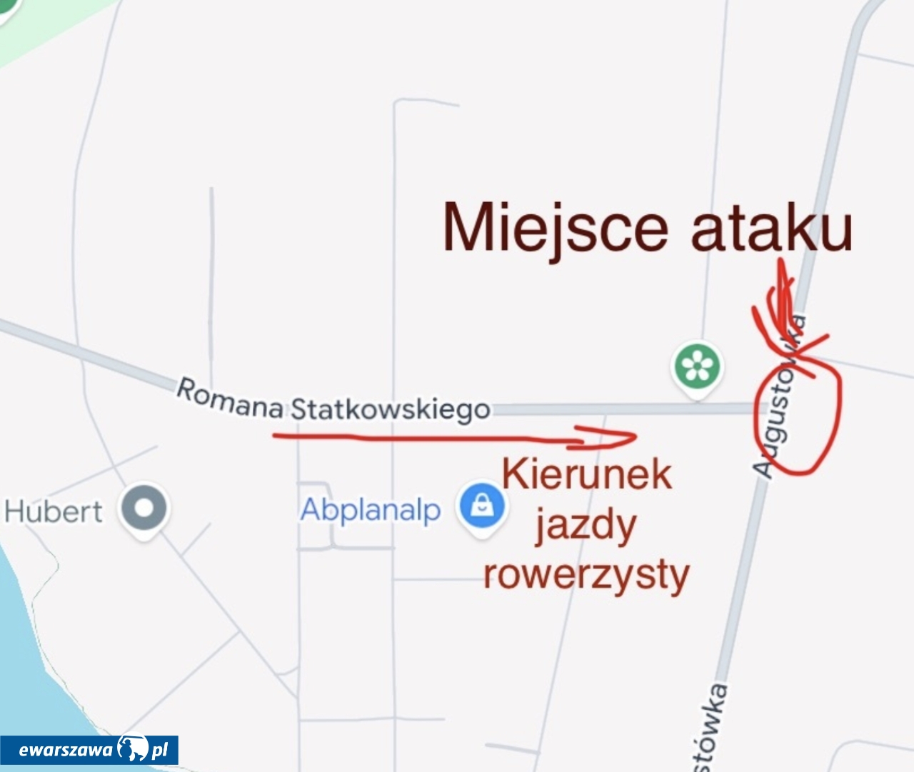 Poszukiwani świadkowie napaści na rowerzystę, do której doszło 14.06.2025 ok. godz. 13:30-13:40 na skrzyżowaniu Statkowskiego i Augustówki (Warszawa, Mokotów).