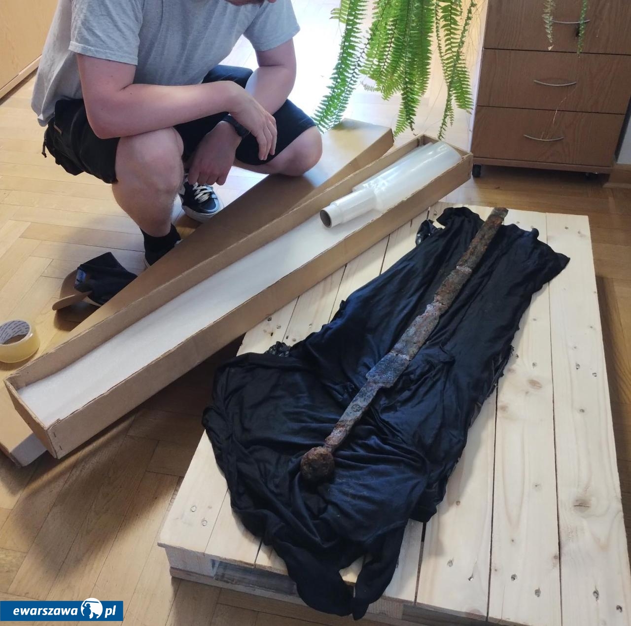 Wyłowiony z Wisły w rejonie Tarchomina miecz znalazł pan Andrzej. - Miecz zachowany jest prawie na całej długości, z charakterystyczną kulistą głowicą i z intrygującym znakiem krzyża na trzonie. Znalazca co prędzej przyniósł go nam, dopełniając tym samym ustawowy obowiązek. My niezwłocznie przekazaliśmy miecz Pracowni Konserwacji Metalu Państwowe Muzeum Archeologiczne. Fachowcy zajmą się jego profesjonalnym zabezpieczeniem - poinformował Stołeczny Konserwator Zabytków.