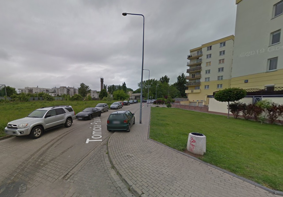 Mieszkańcy ulicy Tomcia Palucha apelują o przeprowadzenie kontroli umiejscowienia słupów oświetleniowych na chodniku przy tej ulicy.
