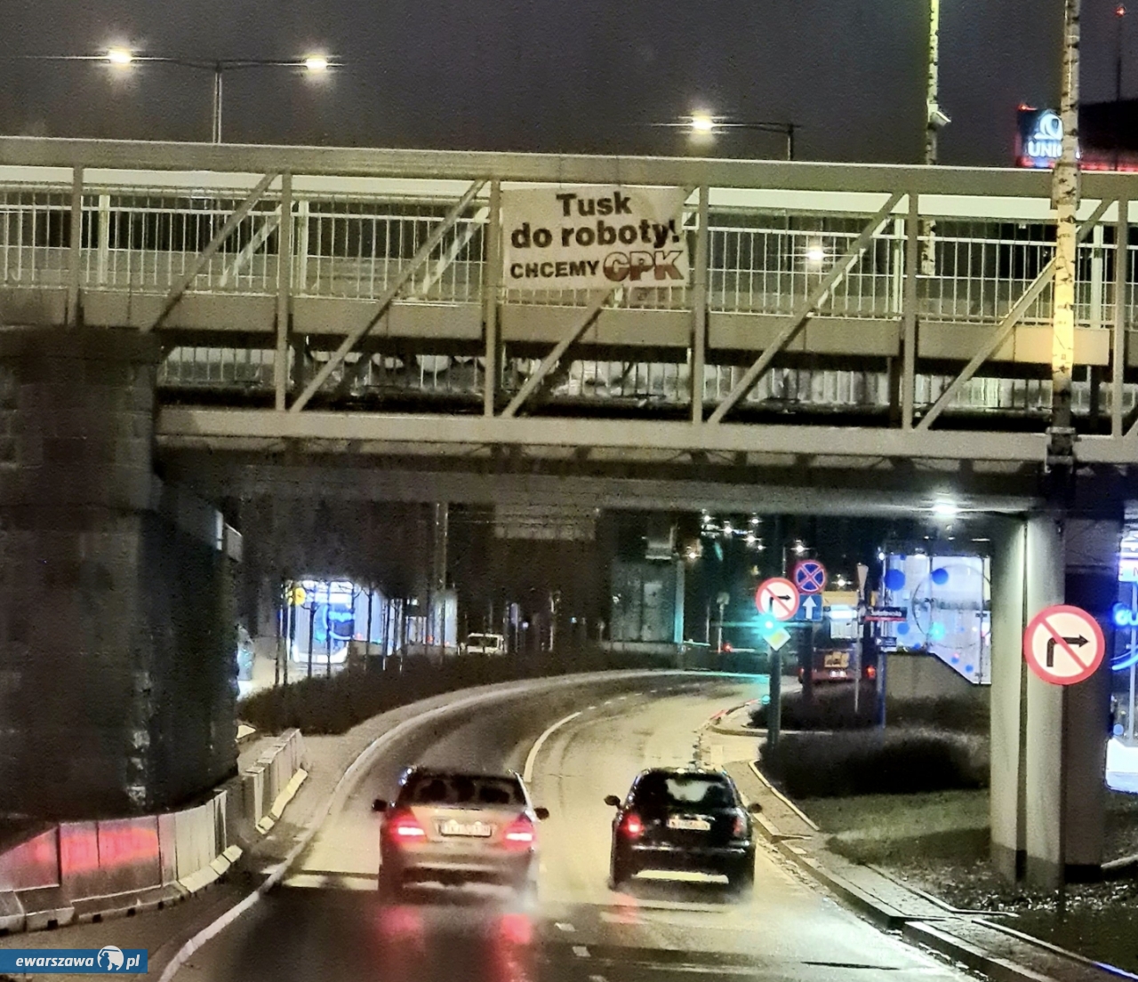 W kilku miejscach Warszawy zawisły bannery "Tusk do roboty. Chcemy CPK". Zdjęcie jednego z bannerów zamieścił działacz PiS Oskar Szafarowicz: