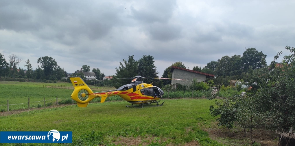 Mechanik przygnieciony przez samochód podczas naprawy. Na miejscu pojawił się helikopter