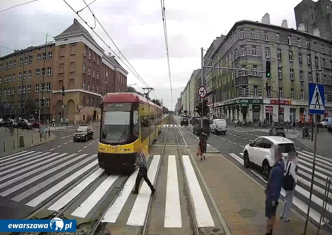 Tramwaje Warszawskie opublikowały przerażające nagranie z monitoringu przy torowisku na skrzyżowaniu al. "Solidarności" z ul. Żelazną na Woli. Widać na nim jak wpatrzony w telefon mężczyzna chce przejść przez ulicę, nie odrywając wzroku od ekranu. Był tak pochłonięty smartfonem, że nie widział nadjeżdżającego tramwaju. Dzięki temu, że motorniczy rozpoczął hamowanie, nie wpadł pod koła, a odbił się tylko od jego przedniej części.