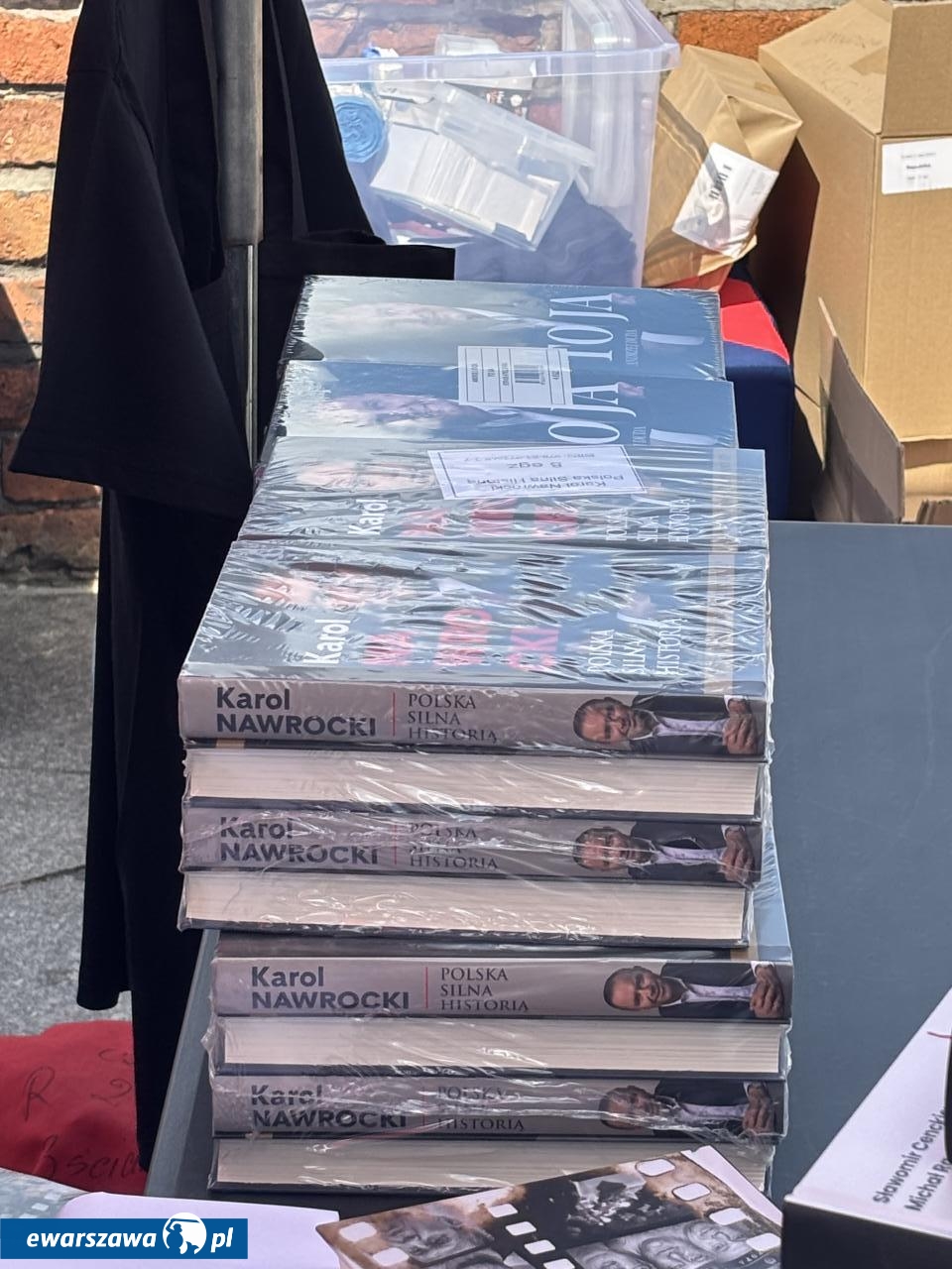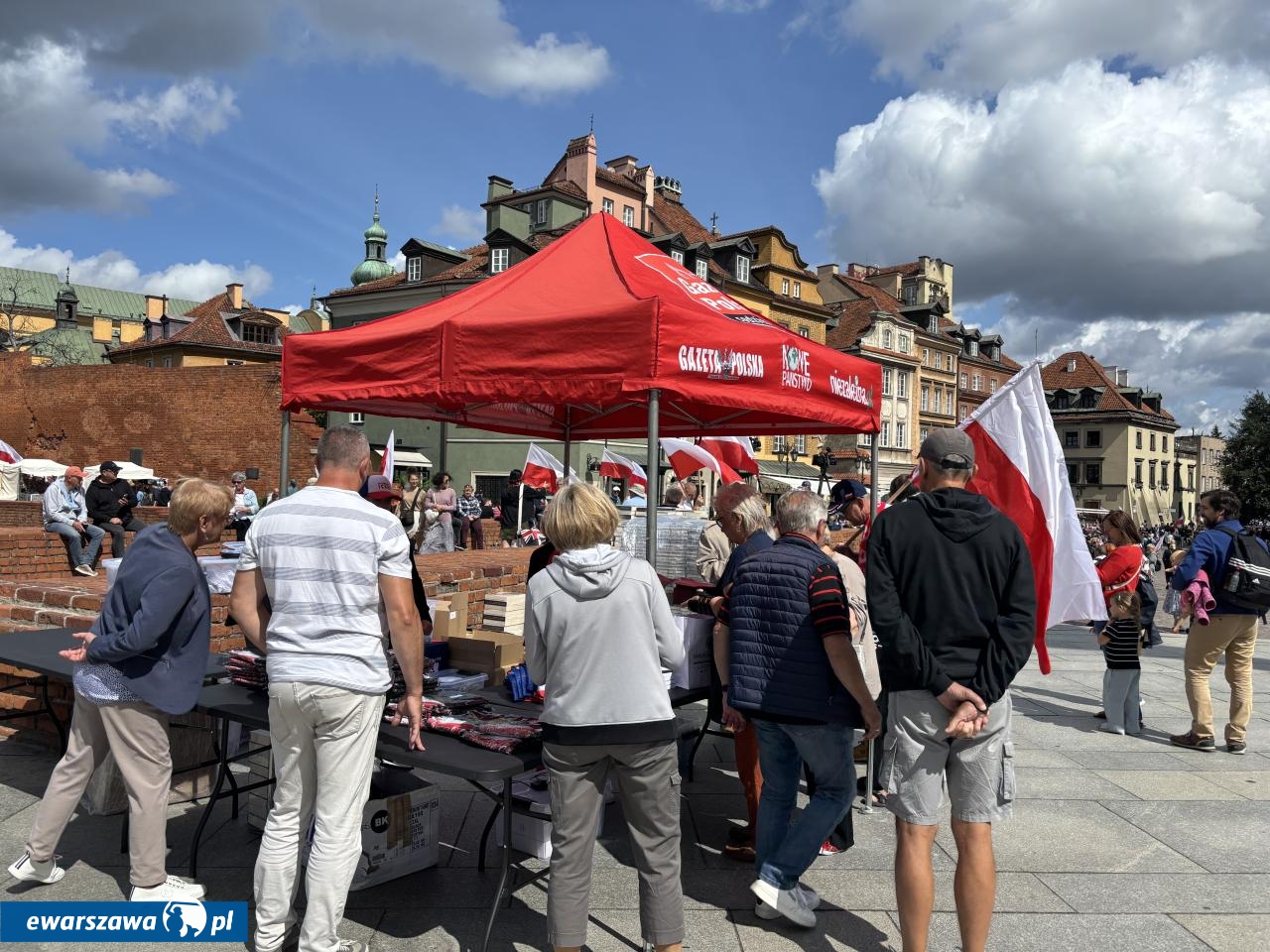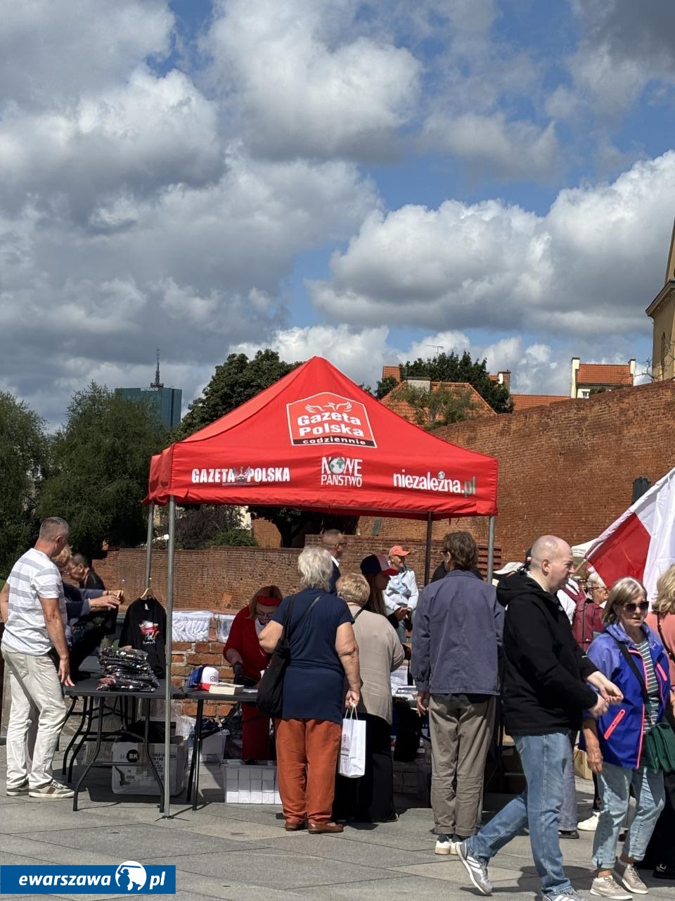 Swój stragan rozłożyła też Gazeta Polska sprzedając przedpremierowo za 80 zł. biografię Karola Nawrockiego. Poza tym znalazła się tam też autobiografia Andrzeja Dudy, kubki TV Republika za 45 złotych czy breloczki za 15 złotych. Wśród transparentów poza flagami z wizerunkiem Jezusa czy logiem stacji Republika, pojawiły się takie hasła jak: "Bóg, honor, ojczyzna", "Żeby Polska była Polską", "Polska na zawsze", "Karol Nawrocki = szczerość", "Karolu, prezydencie narodu, chroń, ratuj od zdrajców i wrogów", "Panie prezydencie obroniliśmy Polskę przed Potrzaskiem".