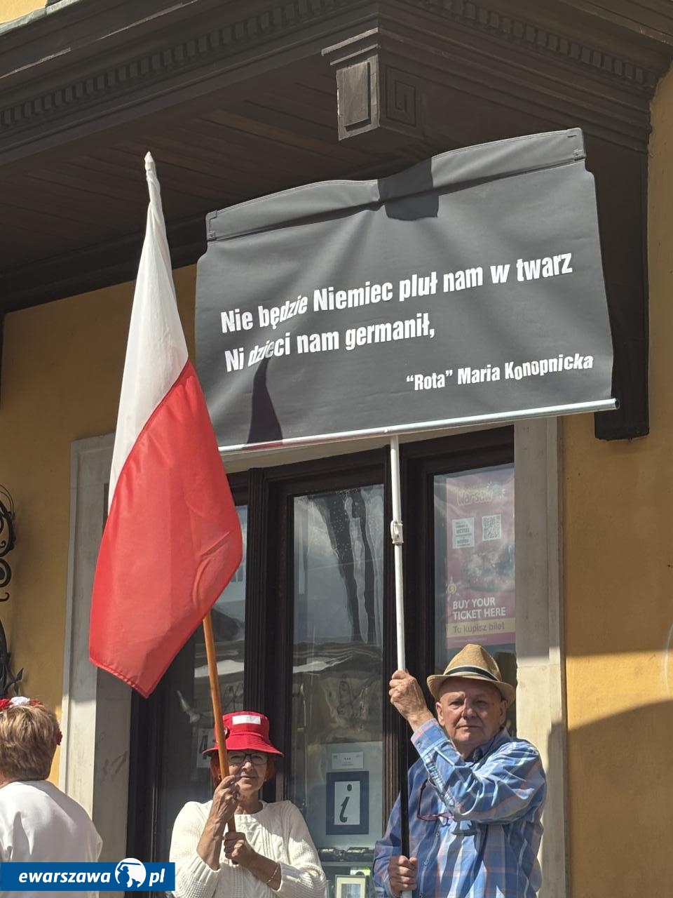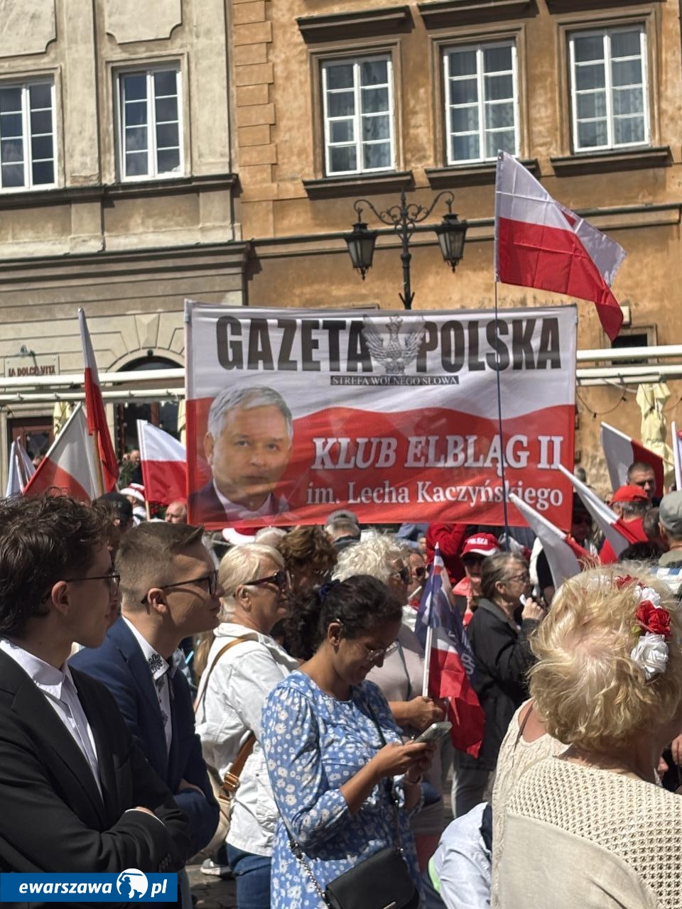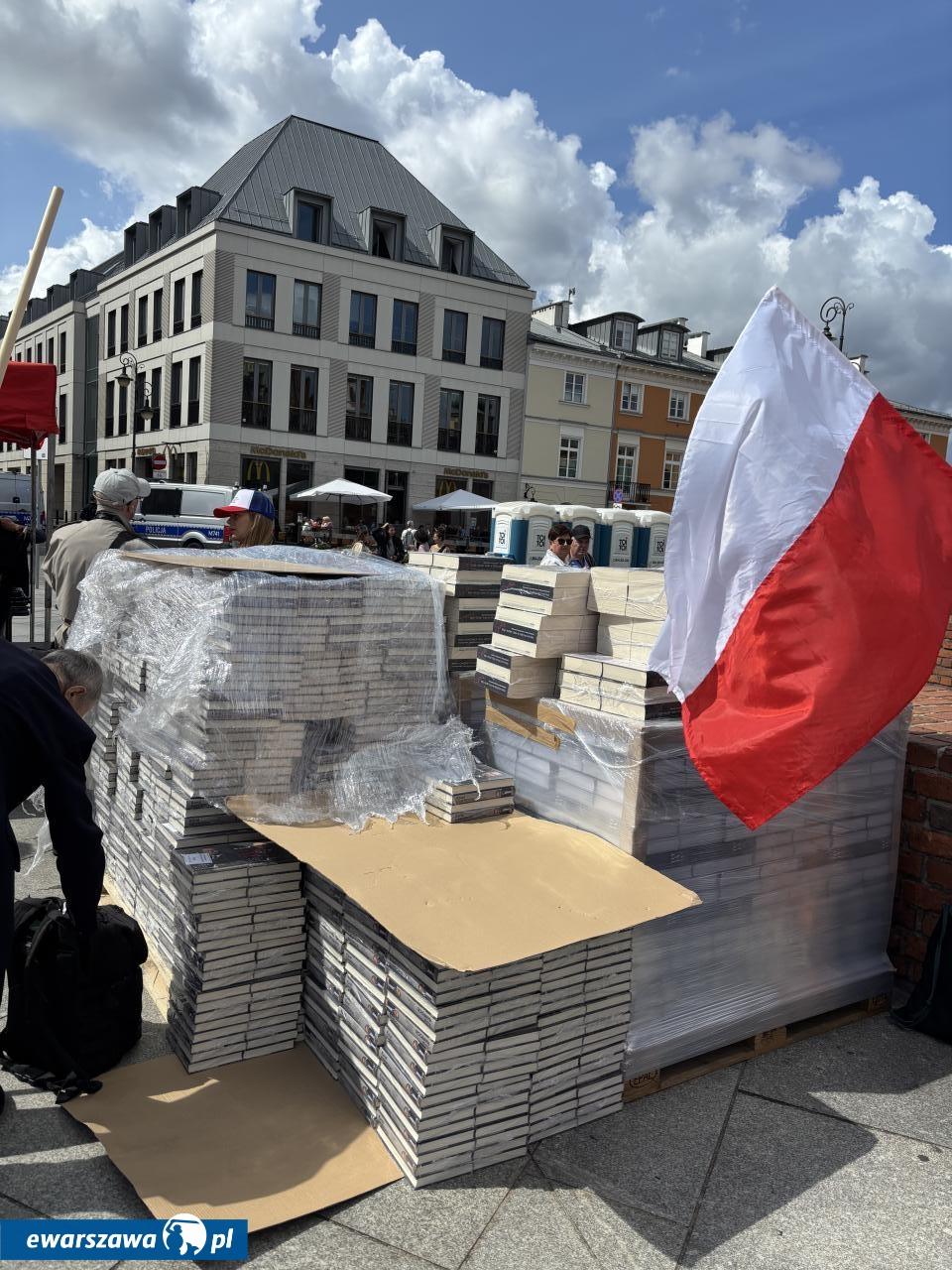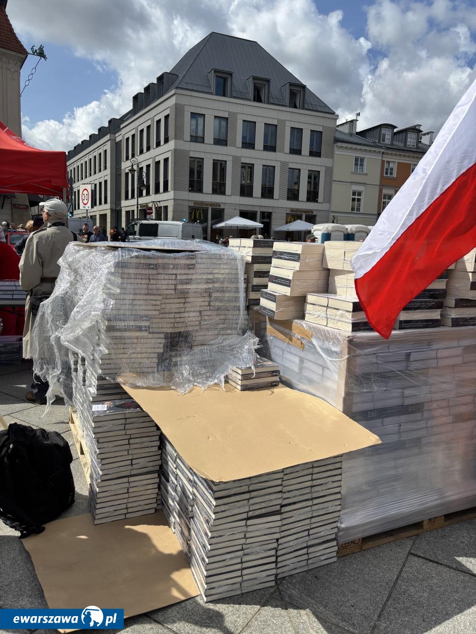 Swój stragan rozłożyła też Gazeta Polska sprzedając przedpremierowo za 80 zł. biografię Karola Nawrockiego. Poza tym znalazła się tam też autobiografia Andrzeja Dudy, kubki TV Republika za 45 złotych czy breloczki za 15 złotych. Wśród transparentów poza flagami z wizerunkiem Jezusa czy logiem stacji Republika, pojawiły się takie hasła jak: "Bóg, honor, ojczyzna", "Żeby Polska była Polską", "Polska na zawsze", "Karol Nawrocki = szczerość", "Karolu, prezydencie narodu, chroń, ratuj od zdrajców i wrogów", "Panie prezydencie obroniliśmy Polskę przed Potrzaskiem".