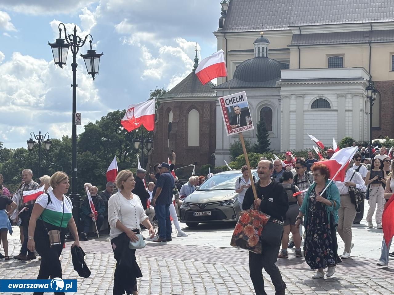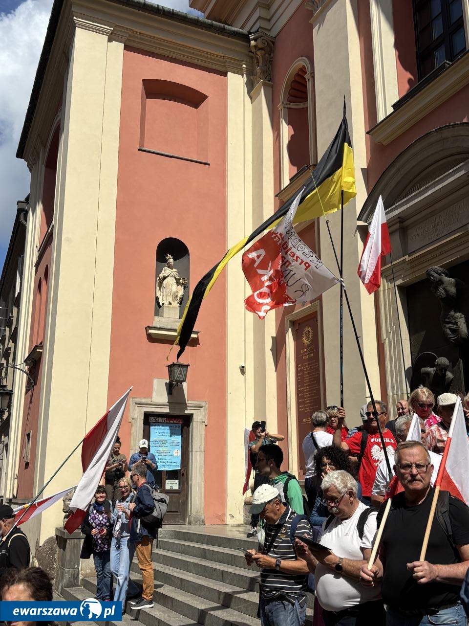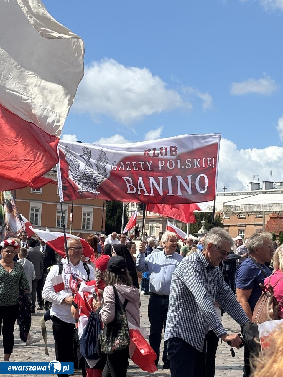 O godz. 12.00 zaczęła się msza Kościele Świętego Jana Chrzciciela w Warszawie nieopodal placu Zamkowego, w intencji ojczyzny i nowego prezydenta. Z okazji zaprzysiężenia Karola Nawrockiego przybyły tłumy. I to nie tylko z Warszawy, ale i przeróżnych zakątków Polski. Na banerach widzieliśmy m.in. takie nazwy miejscowości i wsi jak: Kościan, Węgrów, Elbląg, Banino, Zawiercie, Siemianowice Śląskie, Czeladź, Opatów, Skarżysko-Kamienna, Bolesławiec, Krzeszów, Chełm, Grajewo, Chojnice, Cieszyn, Jasło, Trzebnica, Kraków, Sierpc, Siedlce, czy Sokoły.