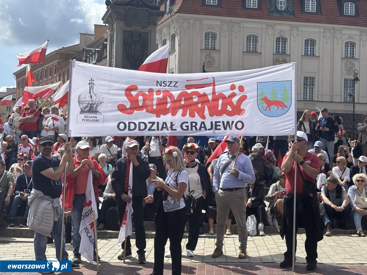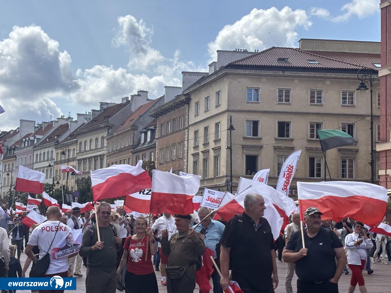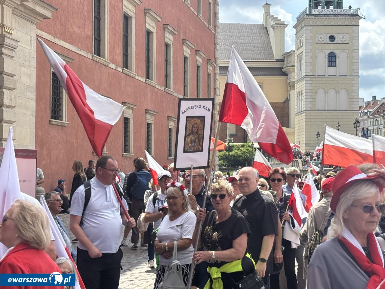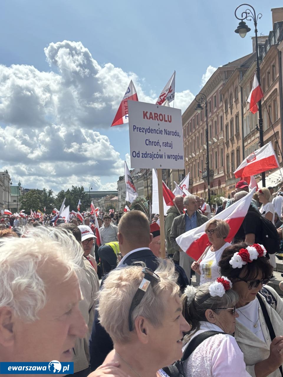 O godz. 12.00 zaczęła się msza Kościele Świętego Jana Chrzciciela w Warszawie nieopodal placu Zamkowego, w intencji ojczyzny i nowego prezydenta. Z okazji zaprzysiężenia Karola Nawrockiego przybyły tłumy. I to nie tylko z Warszawy, ale i przeróżnych zakątków Polski. Na banerach widzieliśmy m.in. takie nazwy miejscowości i wsi jak: Kościan, Węgrów, Elbląg, Banino, Zawiercie, Siemianowice Śląskie, Czeladź, Opatów, Skarżysko-Kamienna, Bolesławiec, Krzeszów, Chełm, Grajewo, Chojnice, Cieszyn, Jasło, Trzebnica, Kraków, Sierpc, Siedlce, czy Sokoły.